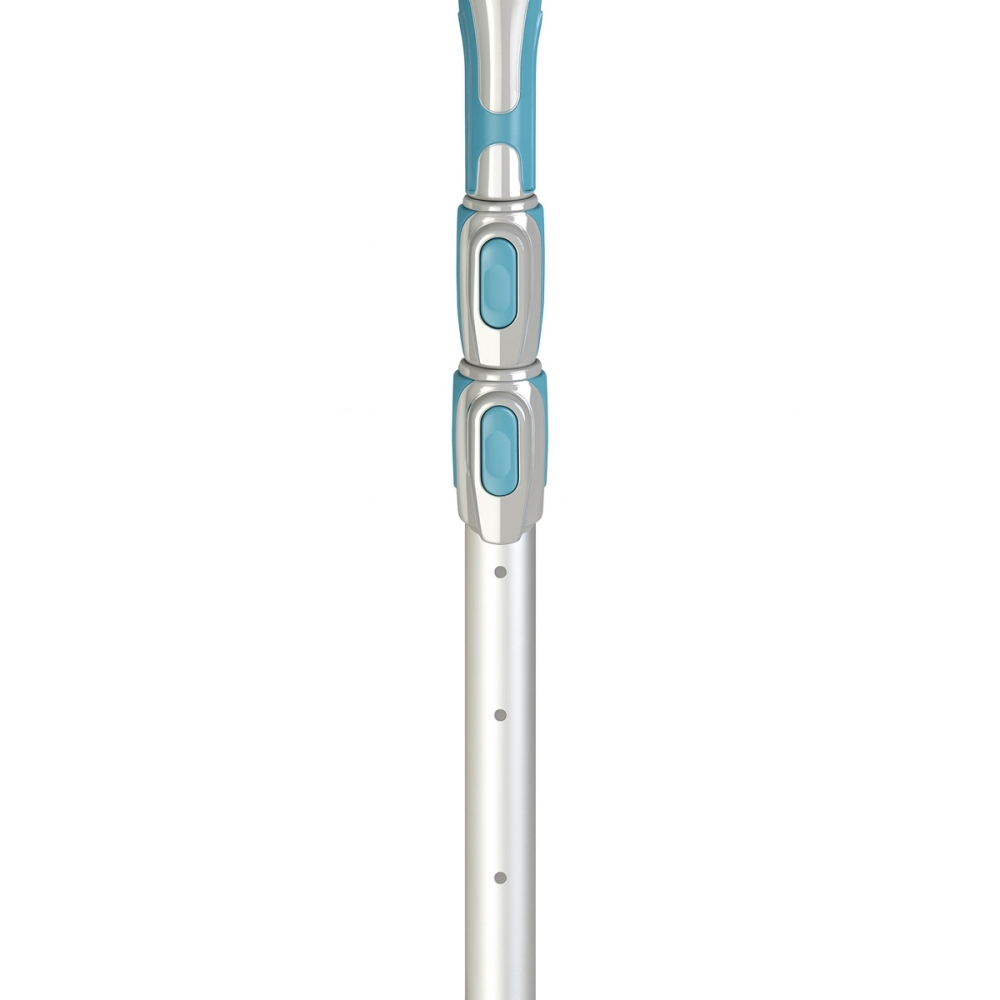 Aluminiowy drążek wykonany jest w standardzie Premium, charakterystycznym dla linii Bayrol PRO. Miękka gumowana rączka poprawia pewny chwyt mokrą dłonią i ogranicza otarcia przy dłuższej pracy, a zintegrowany plastikowy haczyk ułatwia wyławianie większych przedmiotów z basenu, np. zabawek, liści czy pokrywy, która wpadła do wody.