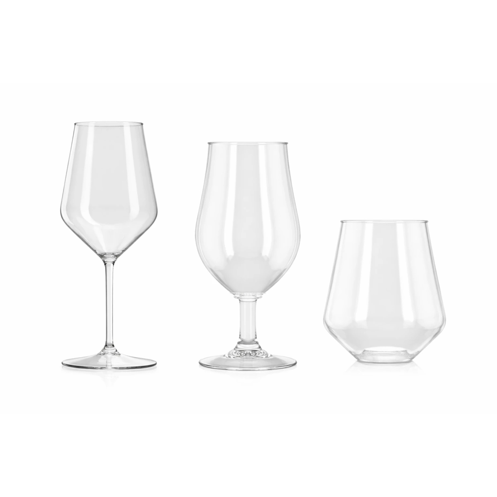 W porównaniu do zwykłych kubków plastikowych, tu zyskujesz formę i wygodę serwowania: osobny pokal do piwa, kieliszek do wina i szklanki do lemoniady czy drinków. Z kolei względem szkła - dostajesz podobny efekt wizualny (transparentne, eleganckie kształty), ale bez kluczowej wady, czyli możliwości stłuczenia.